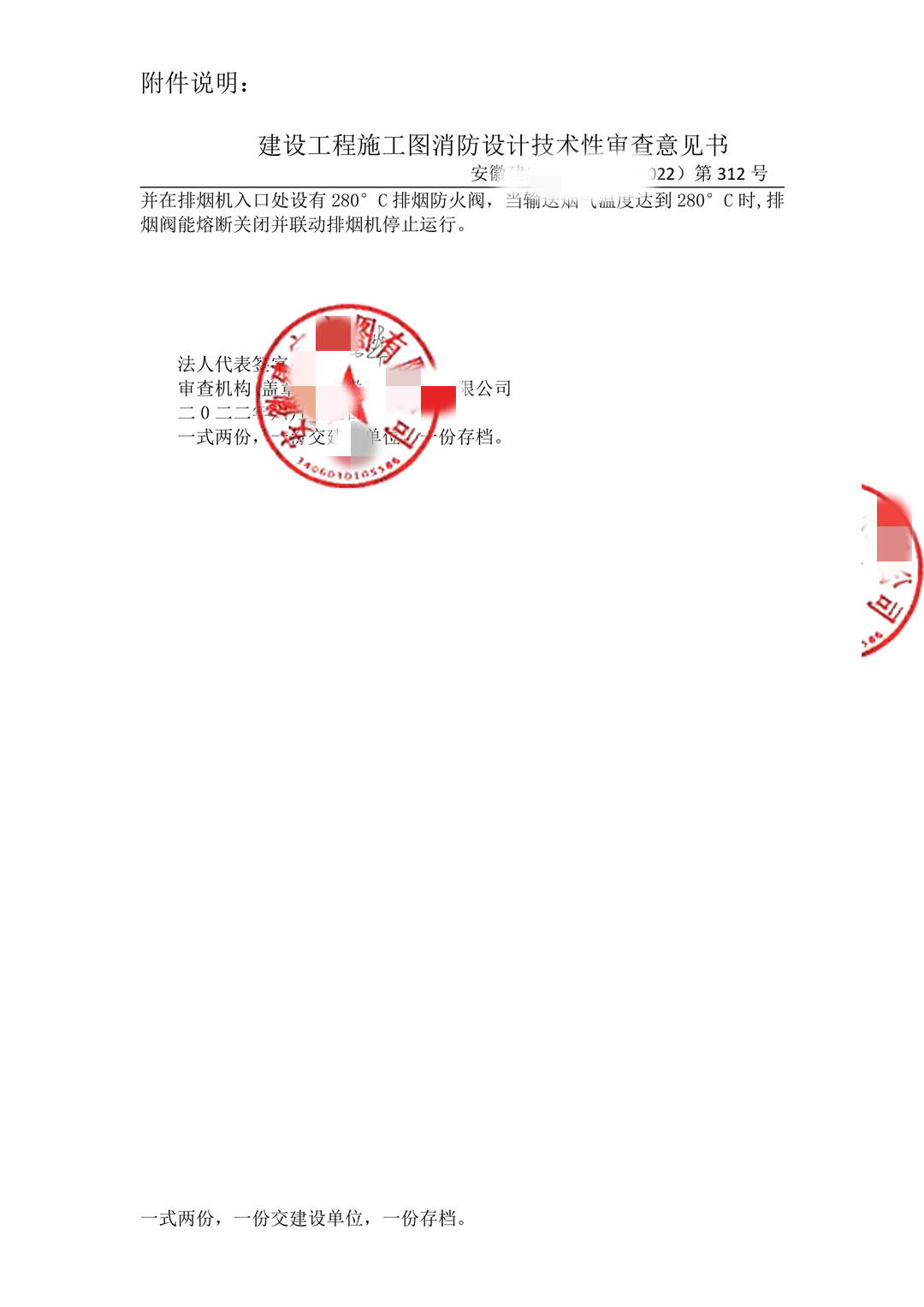 安徽某机构消防审查意见书
